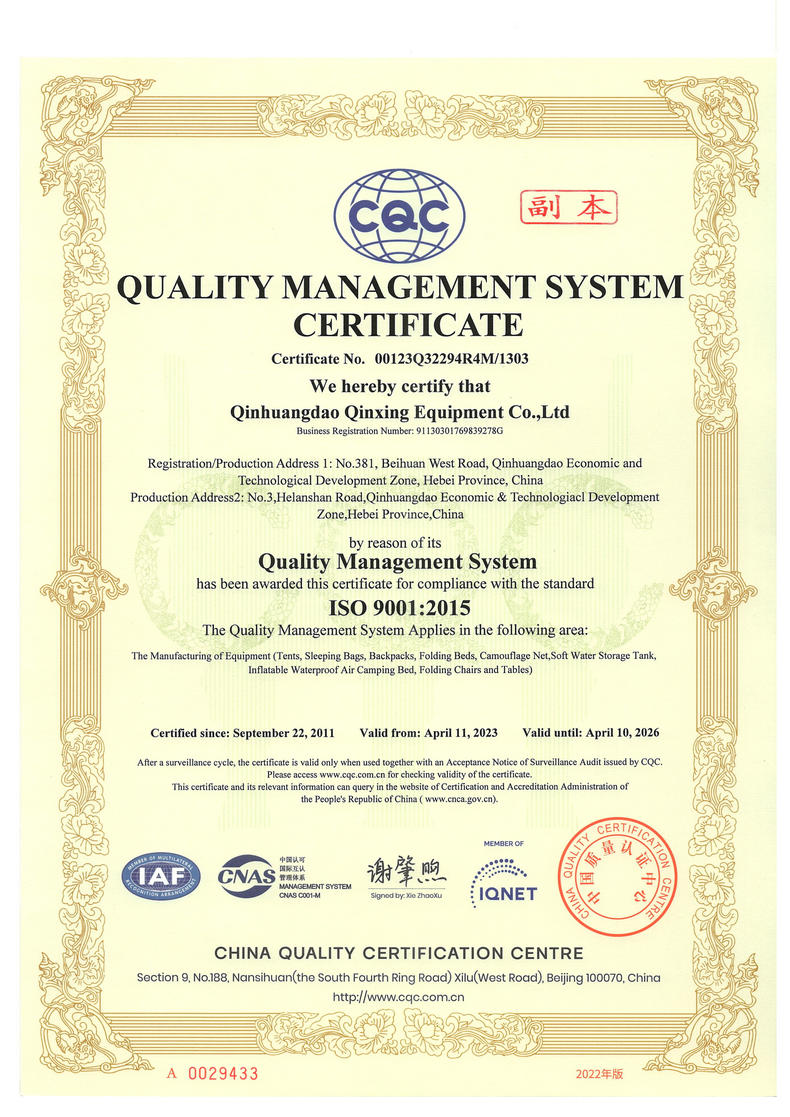 秦皇島秦興裝具有限公司有限公司源于我國(guó)第3524工廠,創(chuàng)建于2005年,占地面積30畝,是一家致力于研究,發(fā)展,制造和銷(xiāo)售為一體的綜合性裝具及紡織服裝加工生產(chǎn)企業(yè),我們的主要產(chǎn)品有單、棉帳篷,民用帳篷,旅游帳篷集各種機(jī)工產(chǎn)品等。